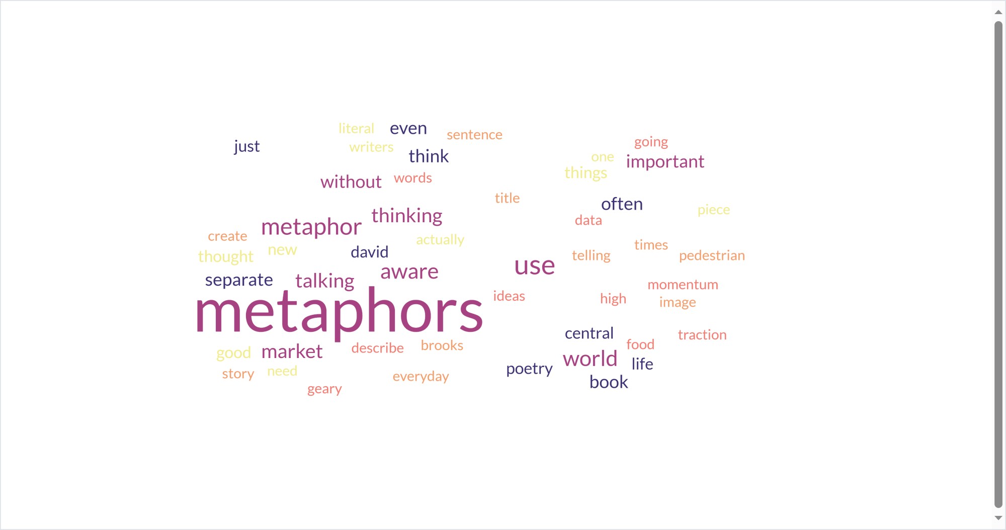 To be aware of the central role metaphors play is to be aware of how imprecise our most important thinking is. It’s to be aware of the constant need to question metaphors with data — to separate the living from the dead ones, and the authentic metaphors that seek to illuminate the world from the tinny advertising and political metaphors that seek to manipulate it.