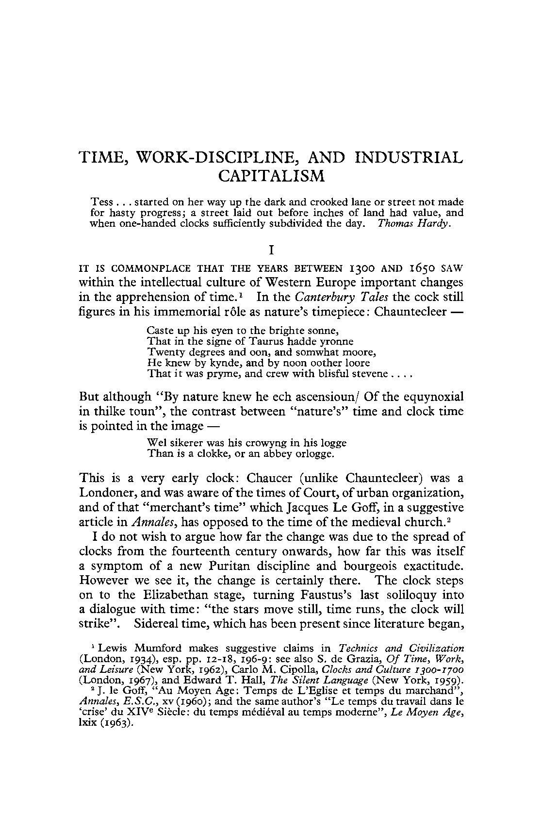 E.P. Thompson: Time, Work-Discipline, and Industrial Capitalism